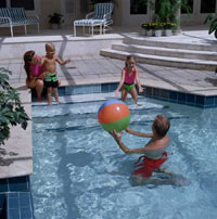 pool maintenance, including hoses, brushes, etc. prior to superchlorinating.